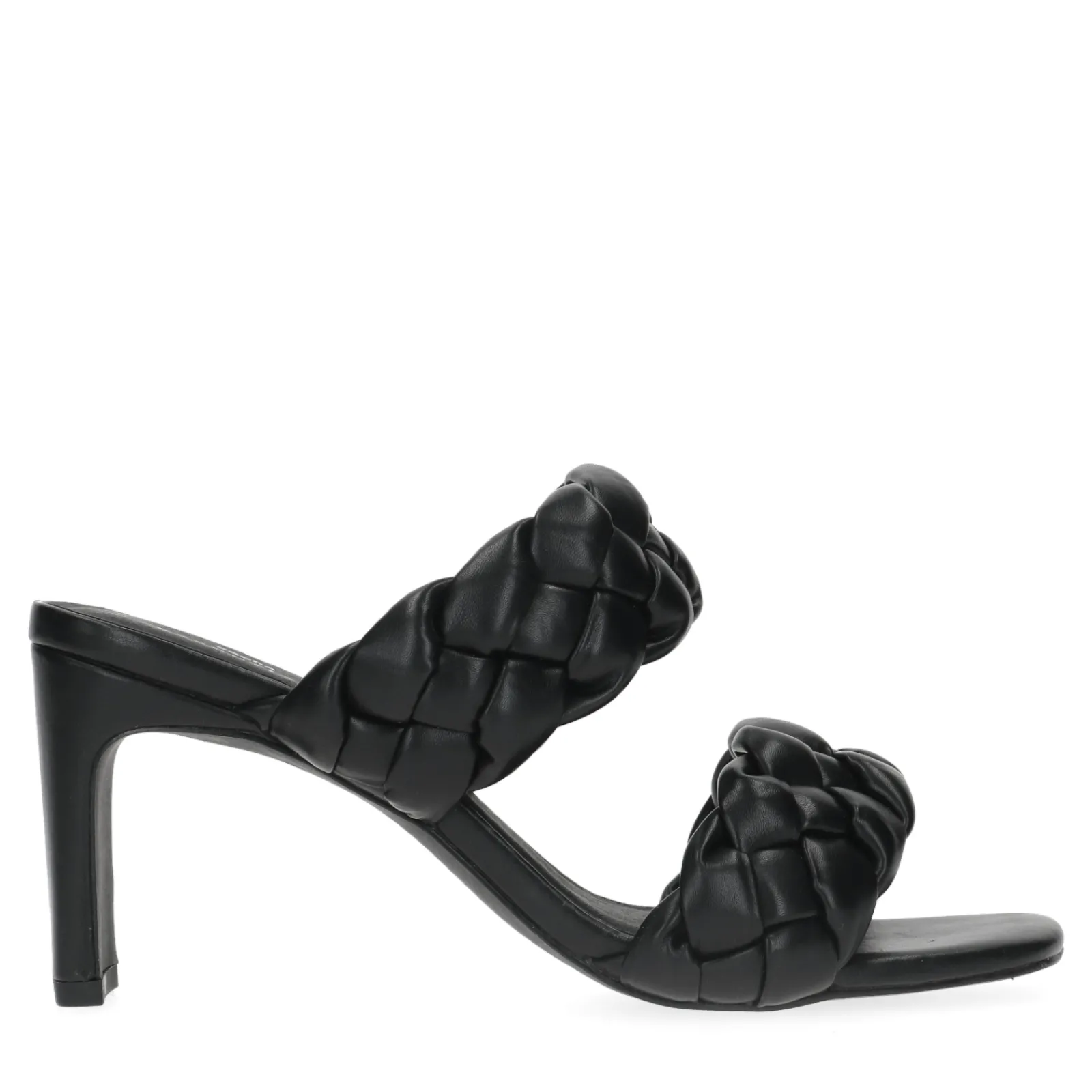 Trendy Zwarte Muiltjes Van Sacha! De Muiltjes Hebben Twee Banden Met Een Gevlochten Structuur En Een Vierkante Carre Neus Waardoor Ze Super Stijlvol Zijn. De Binnenzijde Is Gemaakt Van Leer. De Rechte Hak Heeft Een Hoogte Van 8 Cm. Maak Gebruik Van De Juiste Onderhoudsproducten Voor Zo Lang Mogelijk Plezier.