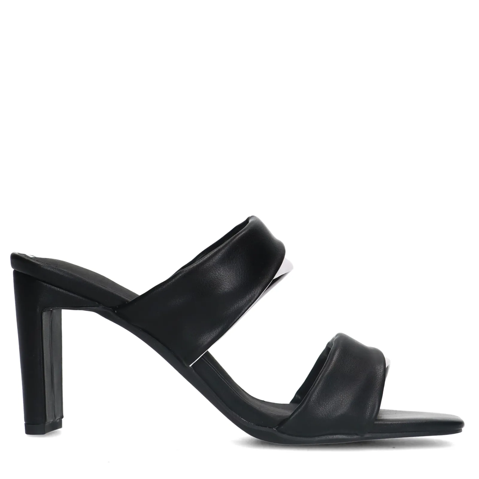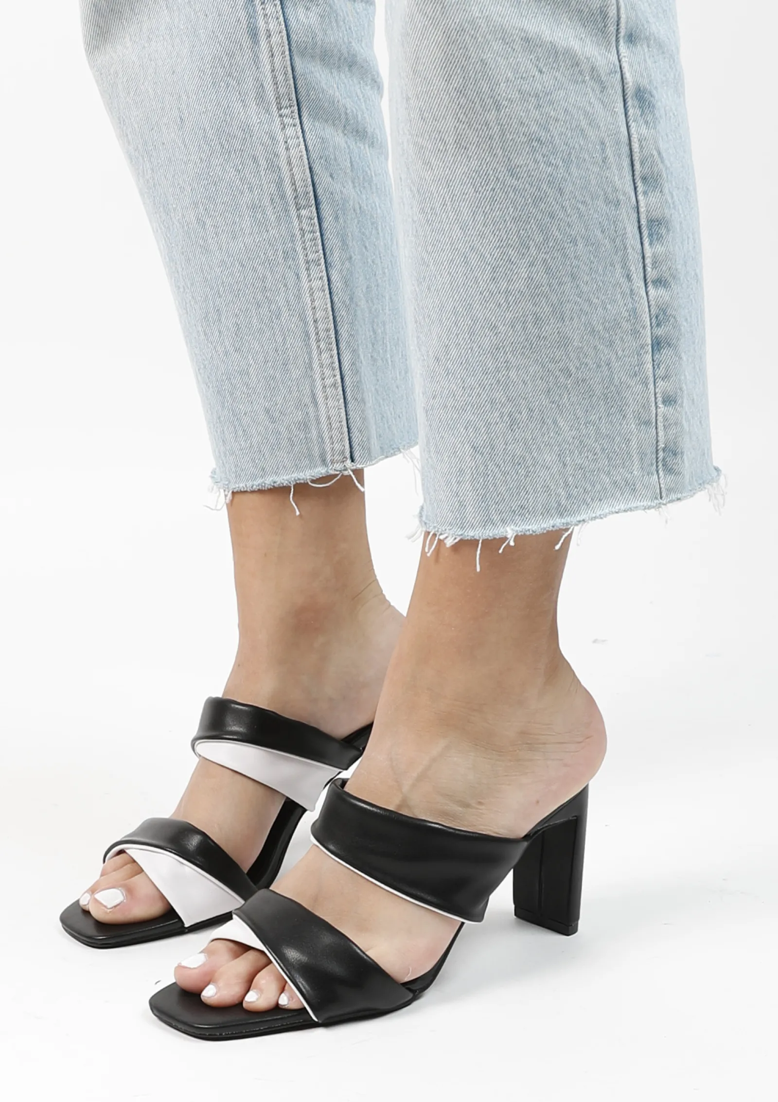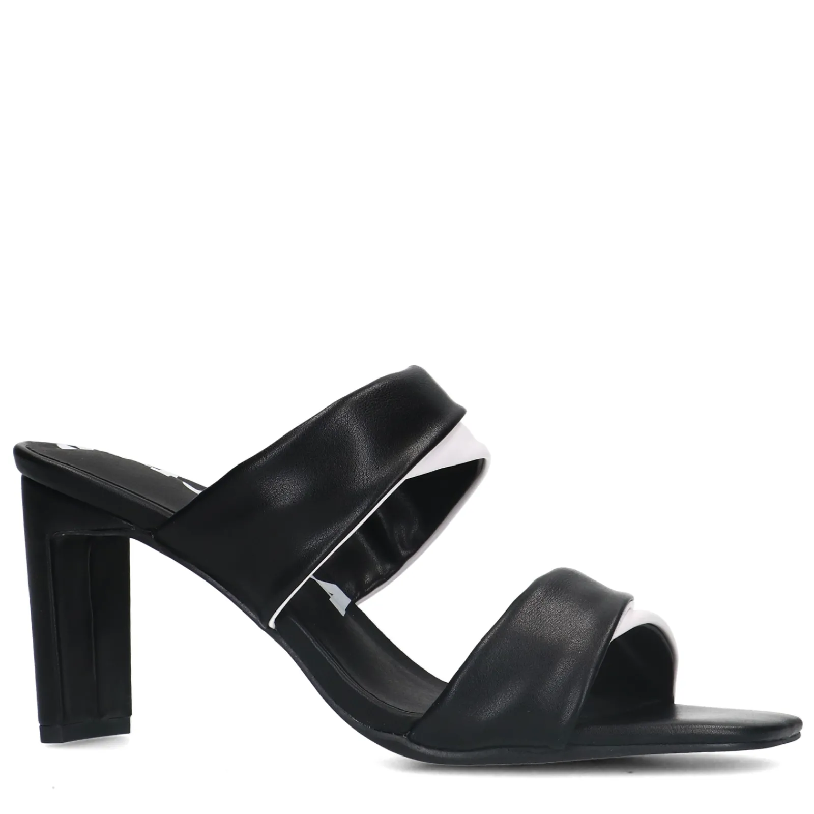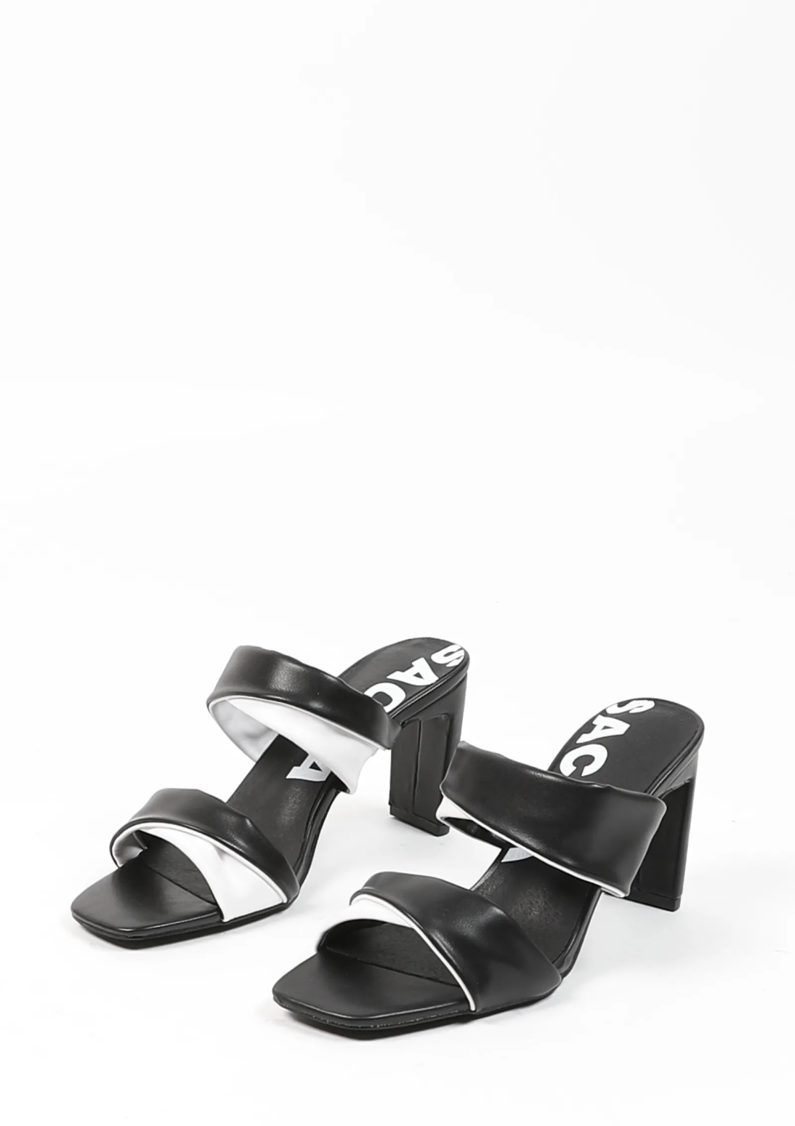 Deze Zwarte Sandalen Met Hak Van Sacha Hebben Twee Brede Banden Waarbij De Zwarte Kleur Wordt Gekruist Met Wit. De Witte Kleur Van De Muiltjes Matcht Met De Binnenzool Van De Schoen. De Hak Is 8 Cm Hoog. Maak Gebruik Van De Juiste Onderhoudsproducten!