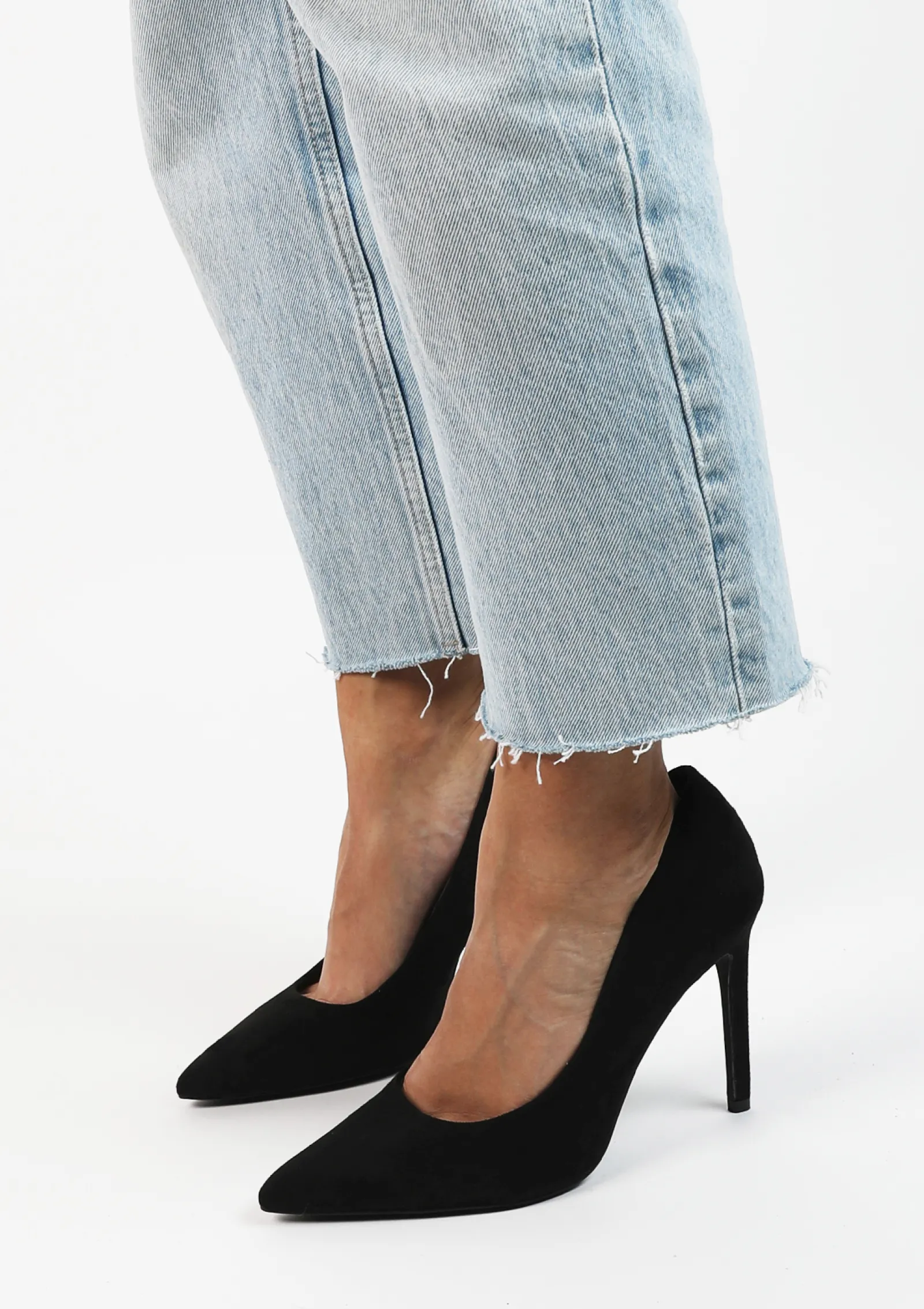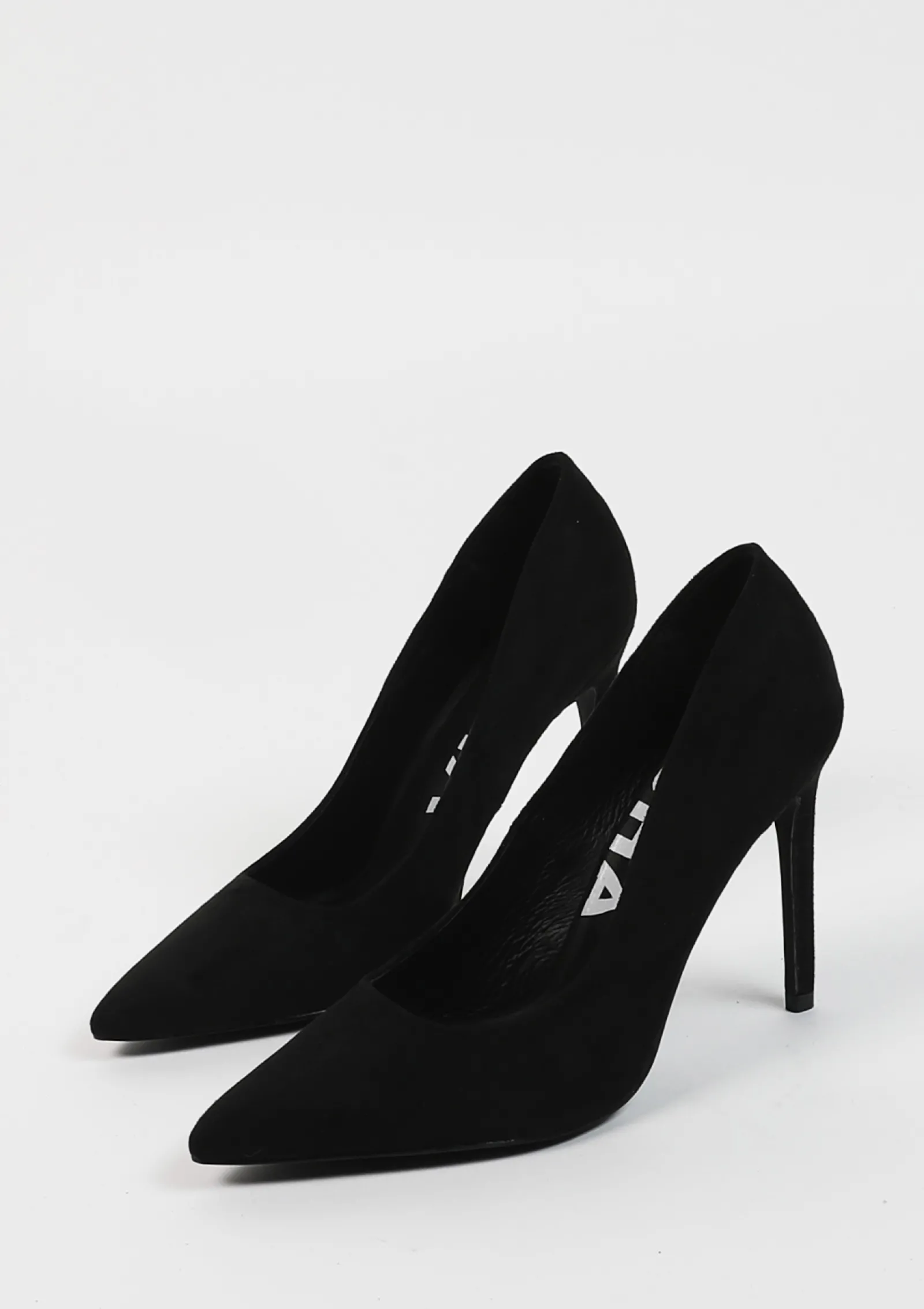 Deze Zwarte Pumps Van Sacha Hebben Een Suede-Look Aan De Buitenkant. De Pumps Hebben Een Puntige Neus En Een Naaldhak Van 11 Cm Hoog. De Binnenkant Is Gemaakt Van Leer En De Buitenkant Van Synthetisch Materiaal. Maak Gebruik Van De Juiste Onderhoudsproducten!