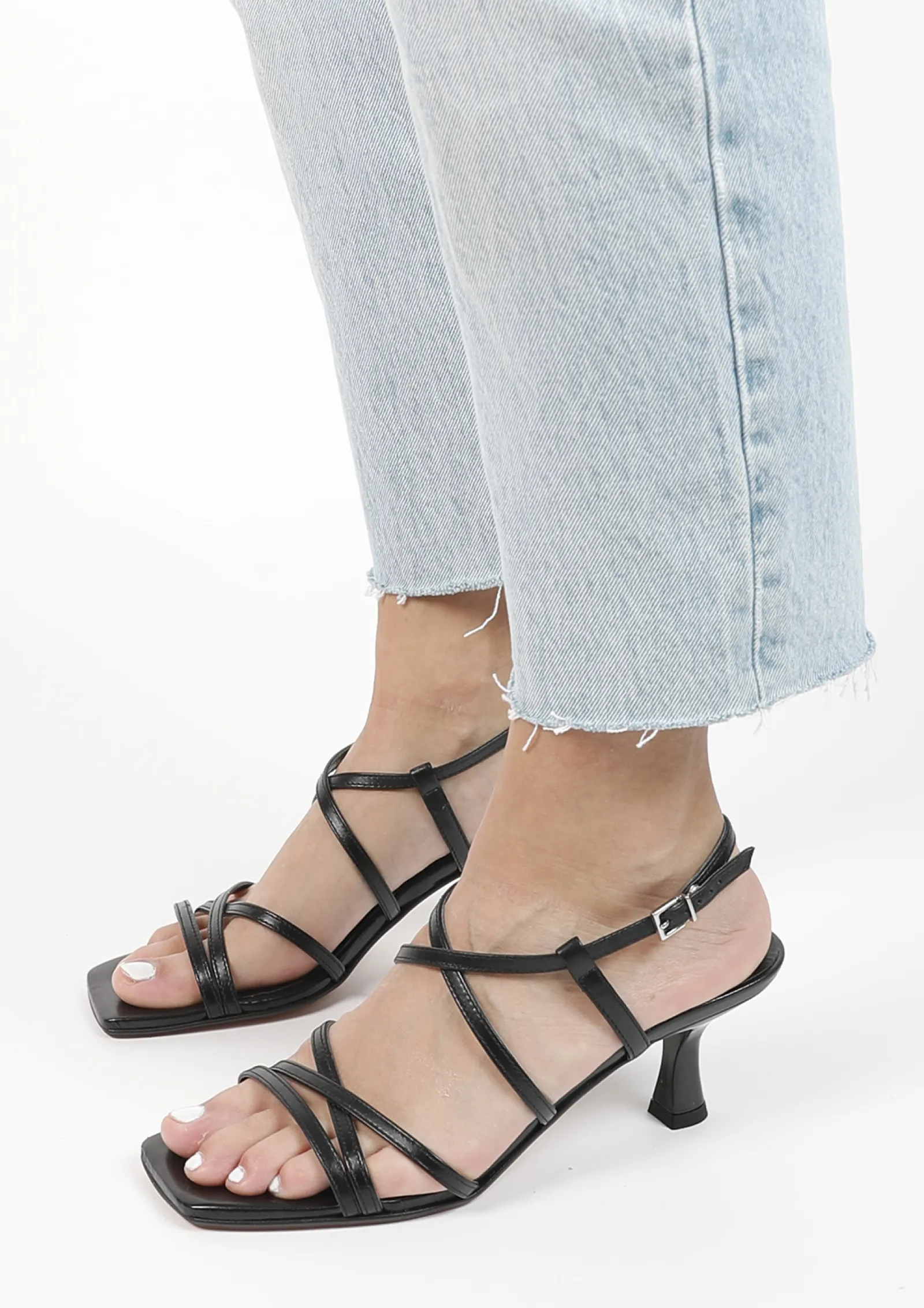 Deze Zwarte Sandalen Met Hak Van Sacha Zijn Echte Eyecatchers. Over De Voet Lopen Meerdere Bandjes En De Schoenen Sluiten Middels Een Zilverkleurige Verstelbare Gesp. De Trechterhak Heeft Een Hoogte Van 7 Cm En De Buitenzijde Is Gemaakt Van Leer. Combineer Deze Sandalen Met Je Favoriete Summer Look En Steal The Show! Maak Gebruik Van De Juiste Onderhoudsproducten.