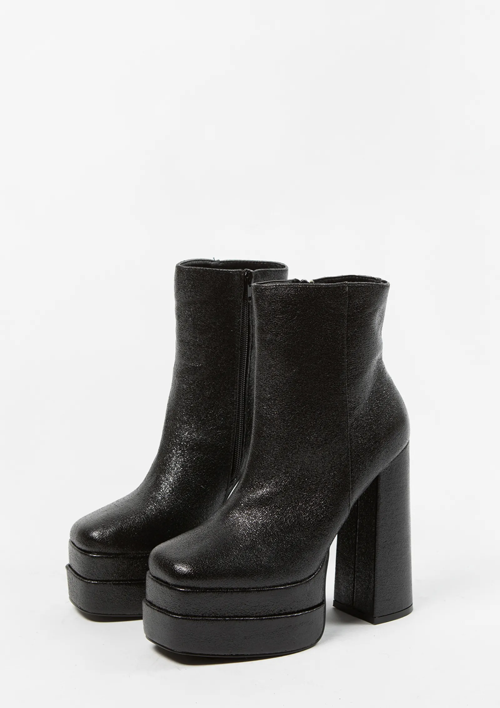 Zwarte Shiny Platform Enkellaarsjes Met Hoge Hak^Sacha Discount