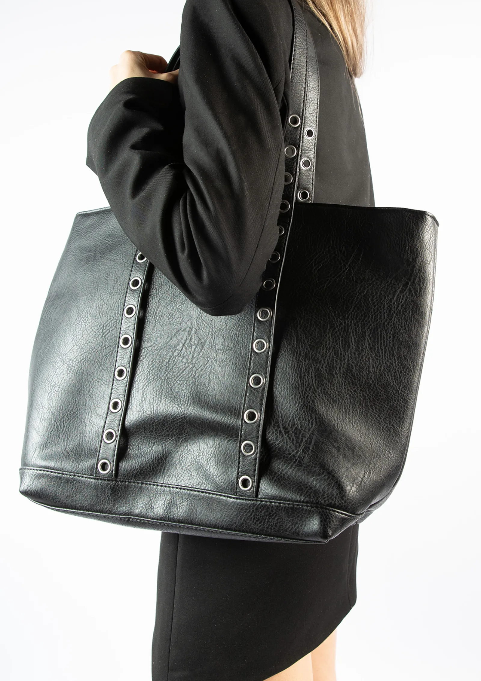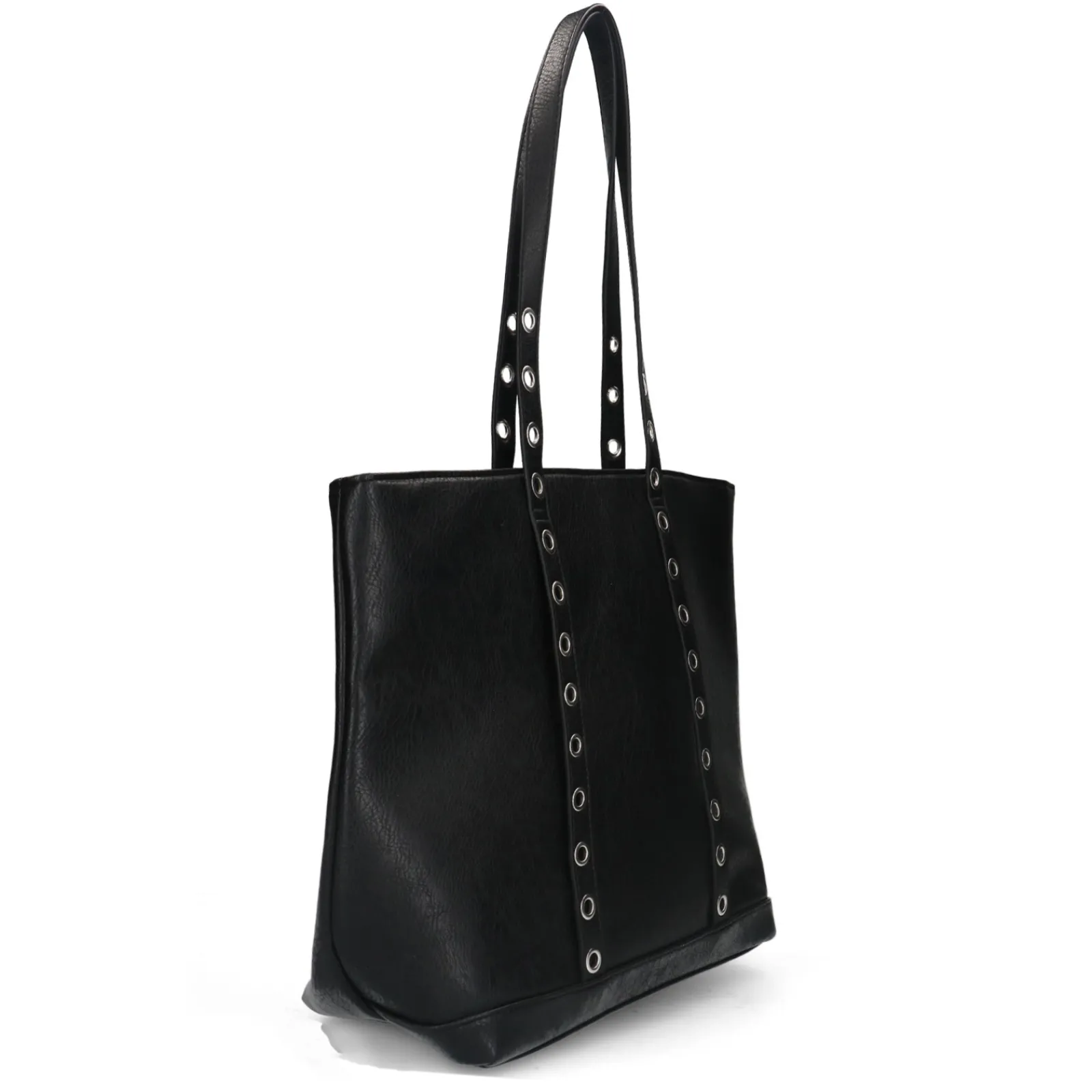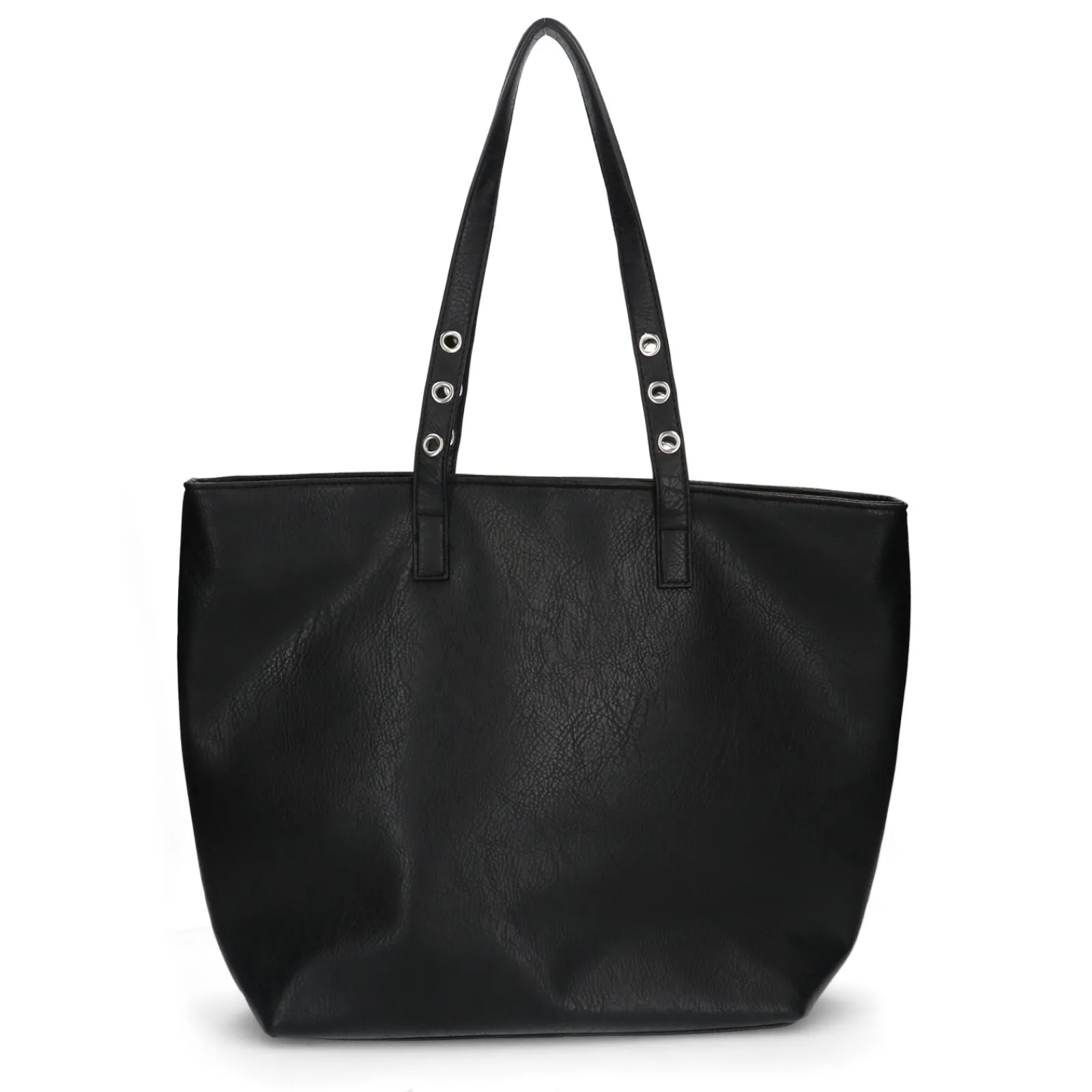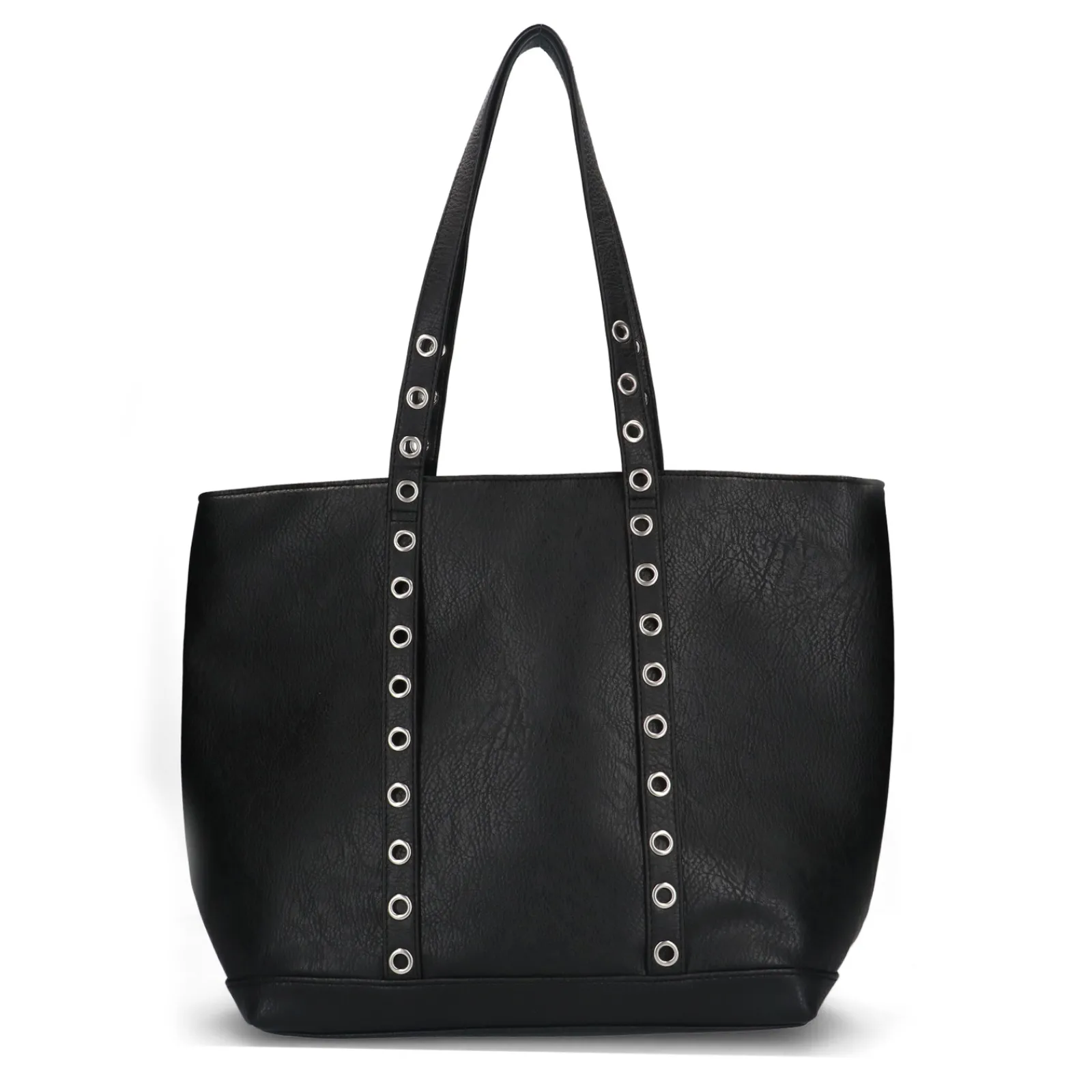 Deze Zwarte Shopper Van Sacha Is De Perfecte Bag Voor Jouw Daily Essentials! De Zwarte Tas Heeft Zilverkleurige Details Over De Voorzijde Van De Tas En De Schouderbanden. De Binnenzijde Heeft Een Ruim Insteekvak Met Daarbij Een Kleiner Opbergvakje Met Ritssluiting. De Schouderbanden Hebben Een Totale Lengte Van 59 Cm En De Tas Is Te Sluiten Met Een Drukknoop. De Totale Afmeting Van De Shopper Is 32X46X13 (Hxbxd) Cm.