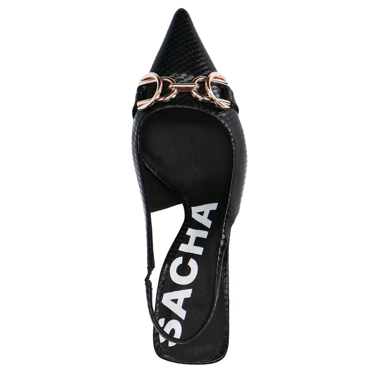 Deze Zwarte Slingback Pumps Van Sacha Hebben Een Subtiel Design Met Goudkleurige Chain. De Pumps Krijgen Een Edgy Karakter Dankzij De Trechterhak Van 6 Cm Hoog. De Pumps Zijn Aan De Buitenzijde Gemaakt Van Synthetisch Materiaal En Aan De Binnenzijde Van Leer. Maak Gebruik Van De Juiste Onderhoudsproducten.
