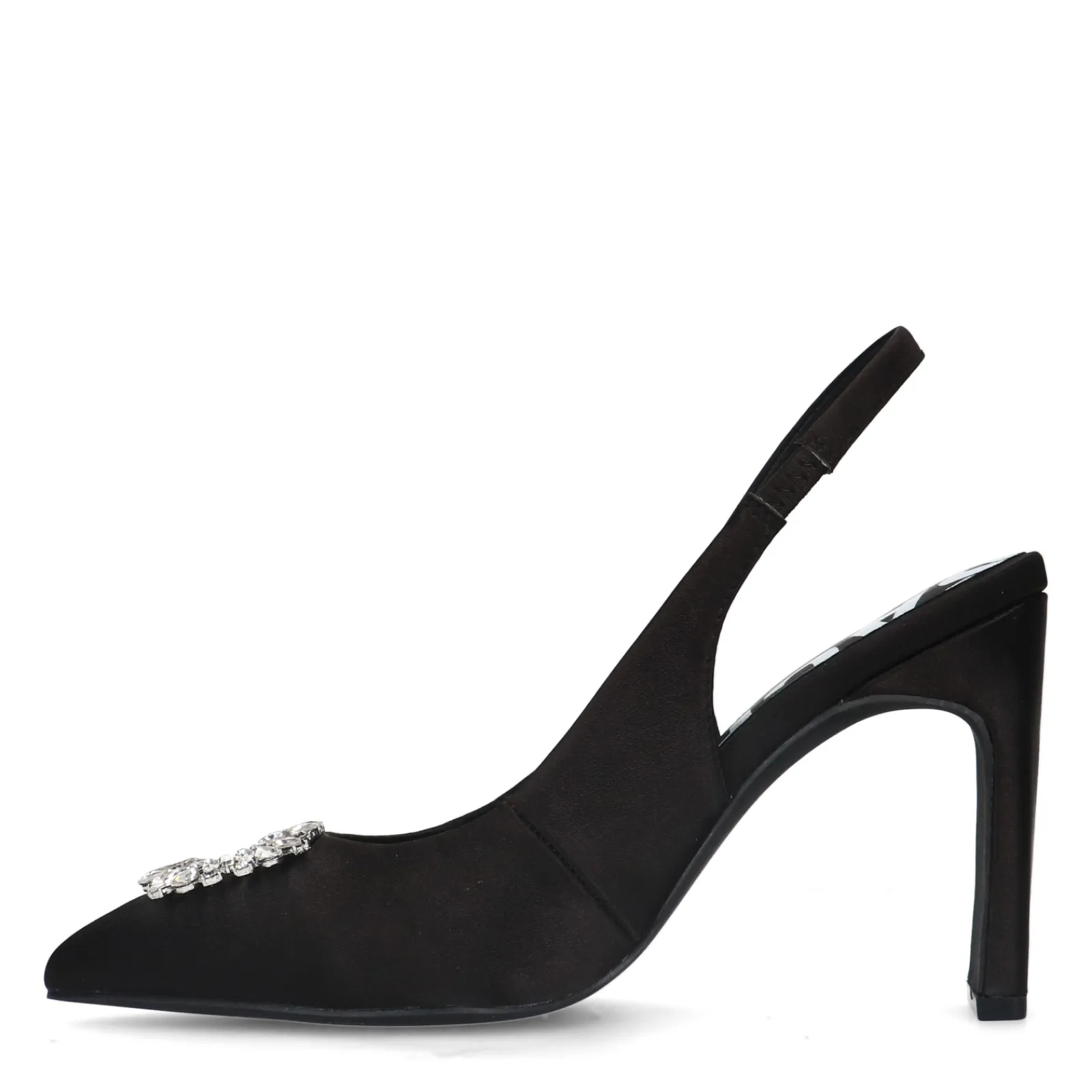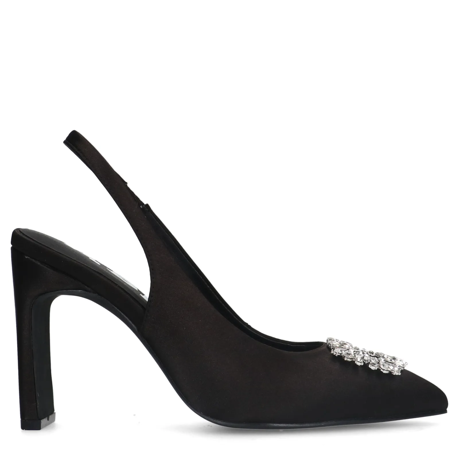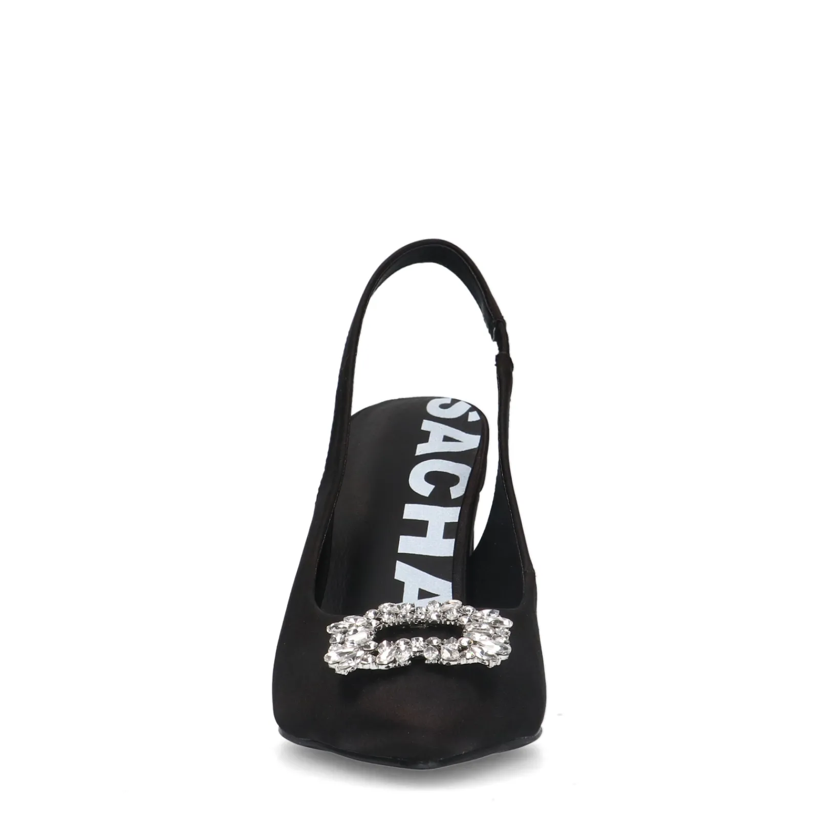 Deze Zwarte Stijlvolle Slingback Pumps Van Sacha Hebben Een Vierkant Strass Detail Op De Puntige Neus Van De Pumps. Dit Wordt Gecombineerd Met Een Rechte Hak Van 10 Cm En Een Open Hiel. De Pumps Zijn Gemaakt Van Synthetisch Materiaal. Maak Gebruik Van De Juiste Onderhoudsproducten.