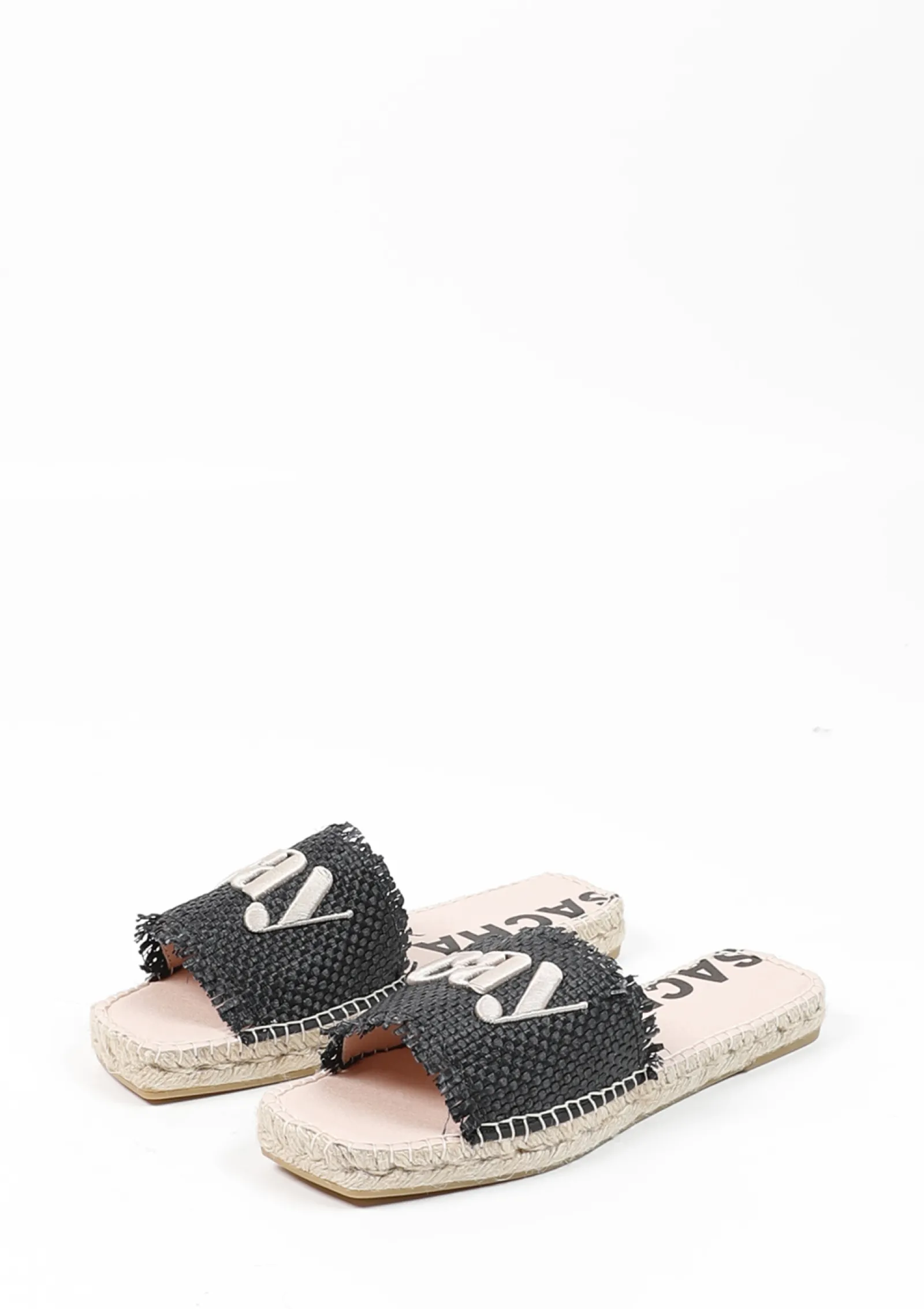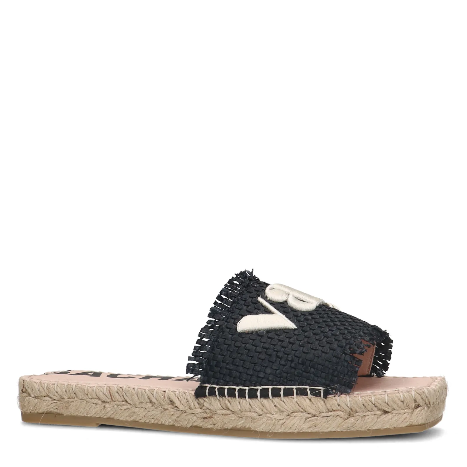 Deze Zwarte Slippers Van Sacha Zijn De Perfecte Summer Musthave! De Slippers Hebben Een Brede Band Van 9 Cm En Een Touwzool Met Een Dikte Van 2 Cm. De Slippers Zijn Gemaakt Van Synthetisch Materiaal.