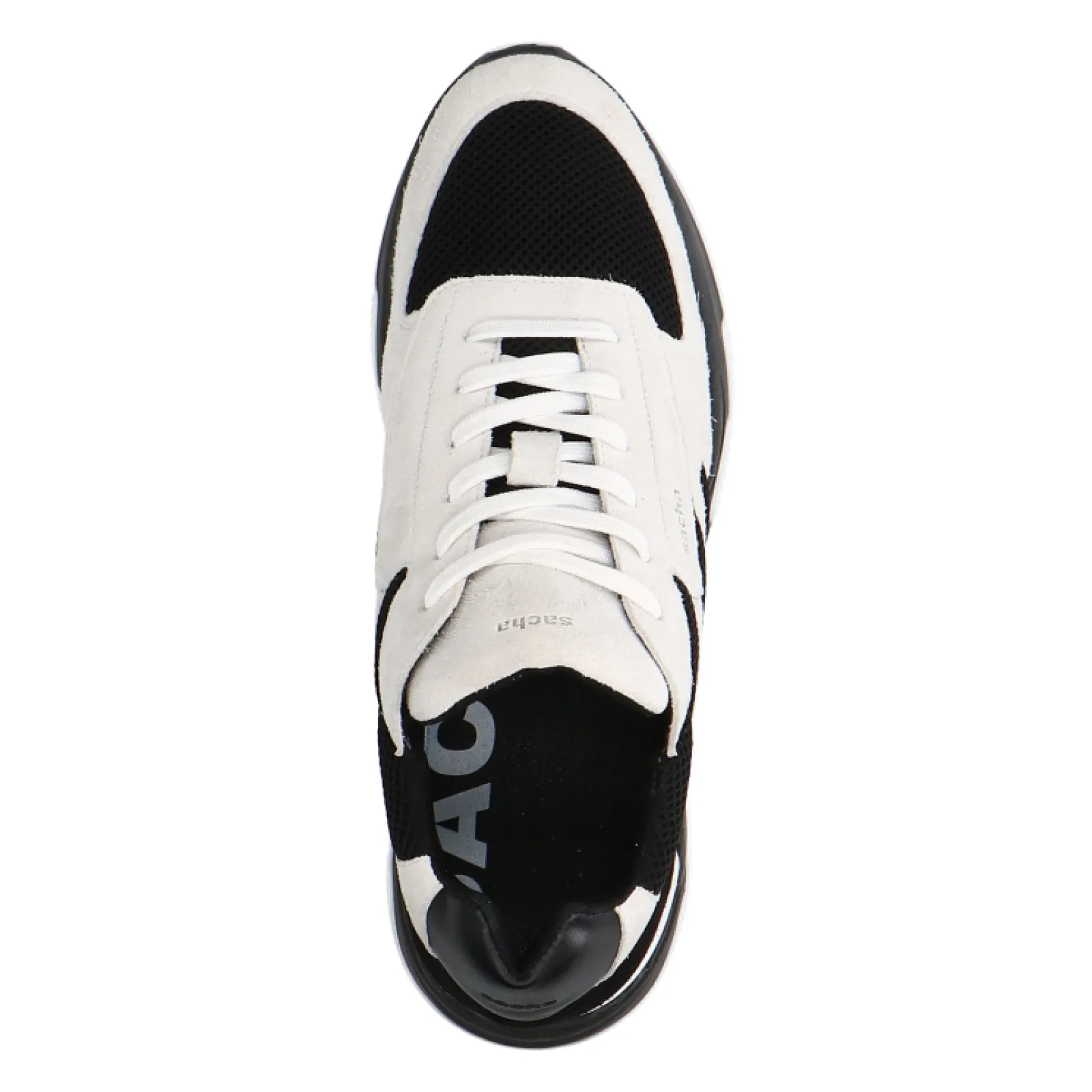 Witte Suede Sneakers Van Sacha. De Sneakers Zijn Aan De Buitenzijde Gemaakt Van Leer En Suede En Hebben Zwarte Details. De Sneakers Hebben Een Doorlopende Zool Van 3 Cm Dik Met Een Lichtverhogende Hak Van 5 Cm. De Sneakers Hebben Twee Veteropties, Zowel Zwarte Als Witte Veters! Good To Know: De Binnenzool Is Uitneembaar. Maak Gebruik Van De Juiste Onderhoudsproducten Zoals De Collonil Carbon Pro 400 Ml.