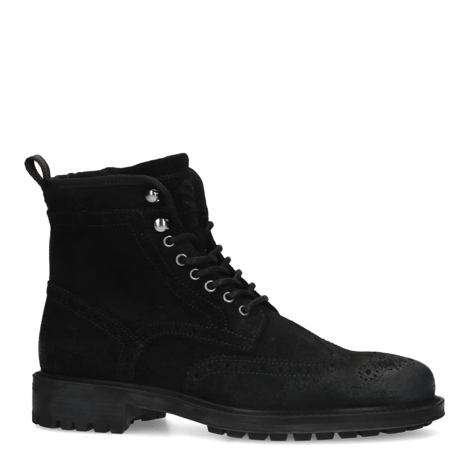 Deze Zwarte Suede Veterboots Van Sacha Hebben Een Uniek Design. De Heren Boots Hebben Een Opvallend Maar Subtiel Design Op De Buitenzijde En Neus Van De Schoen. De Veterboots Zijn Aan De Buitenzijde Gemaakt Van Suede En Aan De Binnenzijde Gemaakt Van Leer. De Laarzen Sluiten Middels Een Handige Rits Aan De Binnenzijde En Hebben Een Schachthoogte Van 15 Cm En Een Schachtomtrek Van 31 Cm. Onderhoud De Veterboots Met De Juiste Onderhoudsproducten!