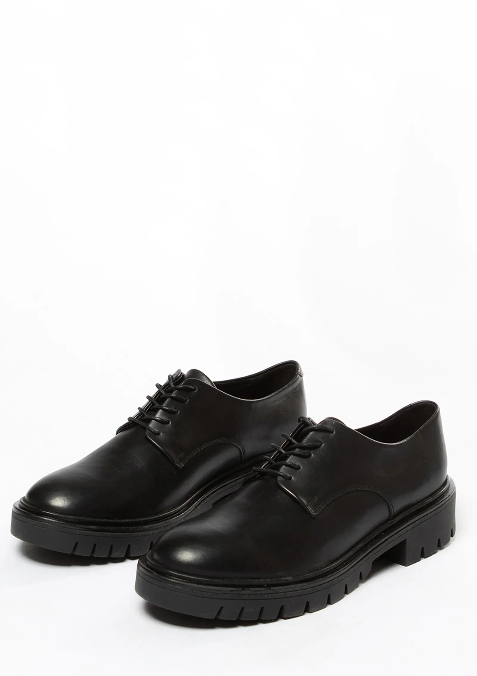 Classy With A Twist! Dat Is Wat Deze Dames Schoenen Het Beste Omschrijft. De Zwarte Leren Veterschoenen Met Plateau Zool…