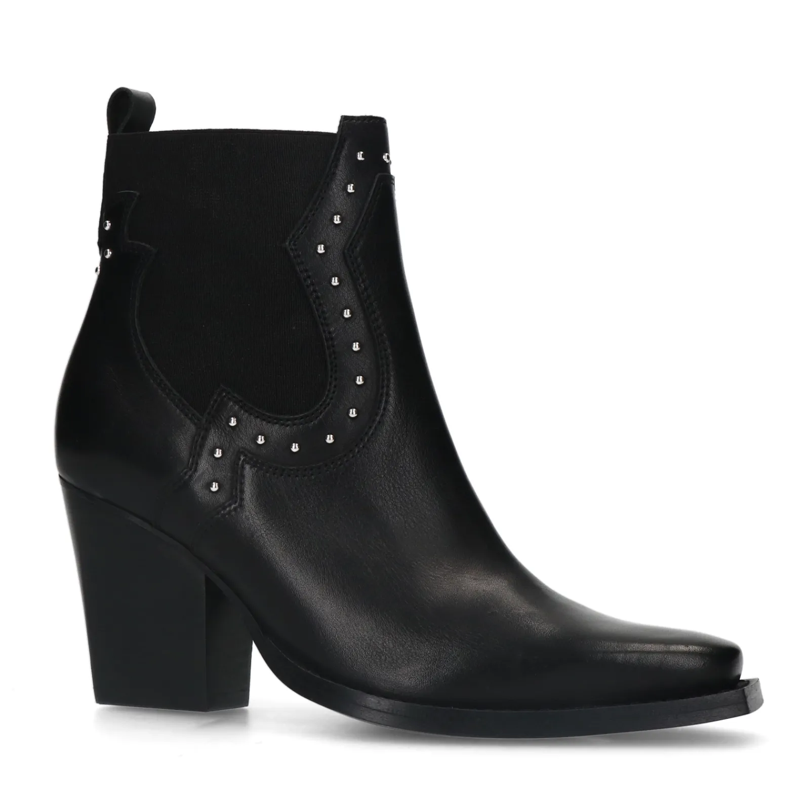 Zwarte Western Enkellaarsjes Met Hak^Sacha Best