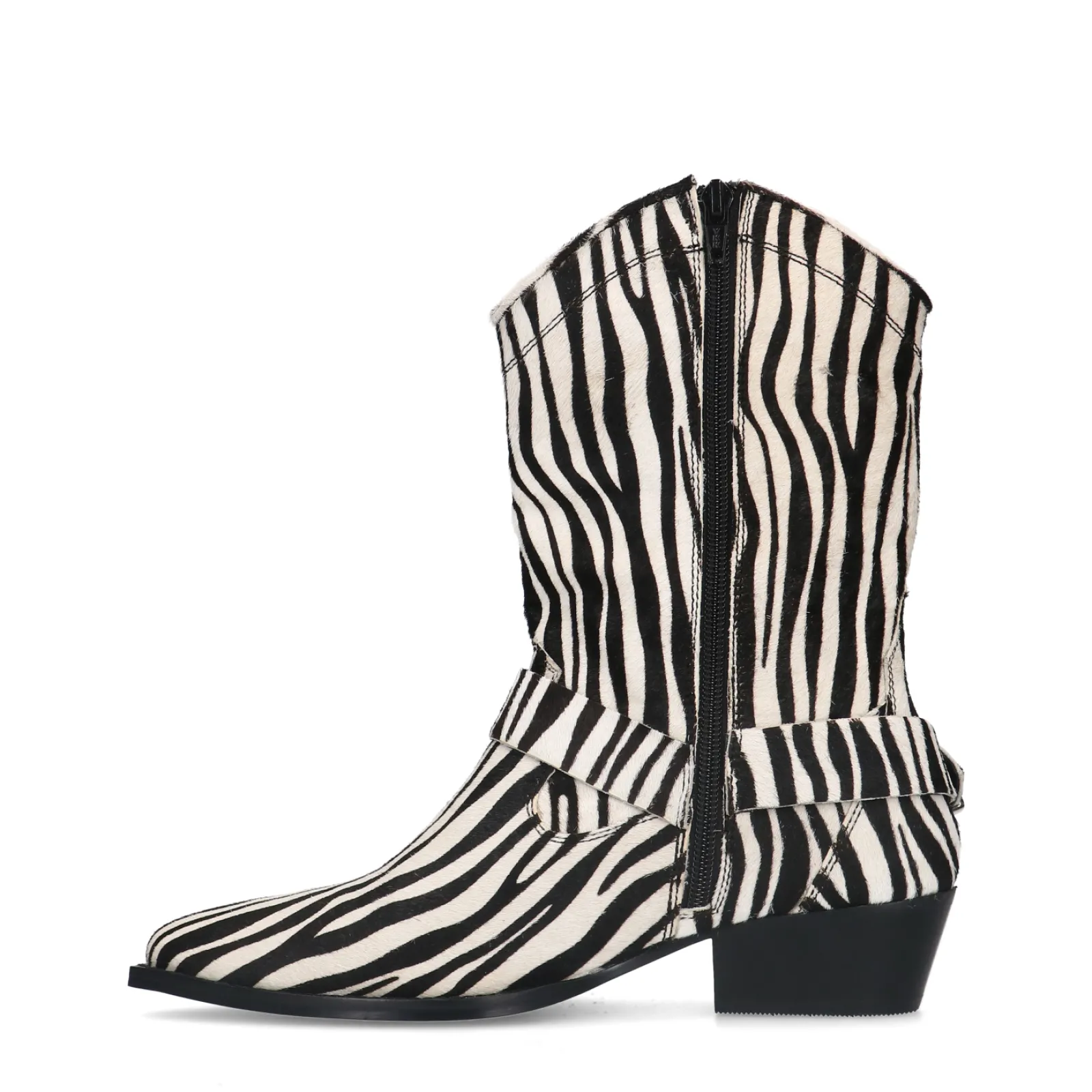 Deze Unieke Enkellaarsjes Van Sacha Hebben Een Stoer Western Karakter En Een Harig Zebraprint Afwerking Aan De Buitenzijde. De Cowboylaarsjes Hebben Een Lage Hak Van 4 Cm, Een Zilverkleurige Buckle Gesp En Een Puntige Neus. De Western Boots Hebben Een Schachthoogte Van 20 Cm, Een Schachtomtrek Van 33 Cm En Een Rits Aan De Binnenzijde. Verzorg De Enkelalaarsjes Met De Juiste Onderhoudsproducten!