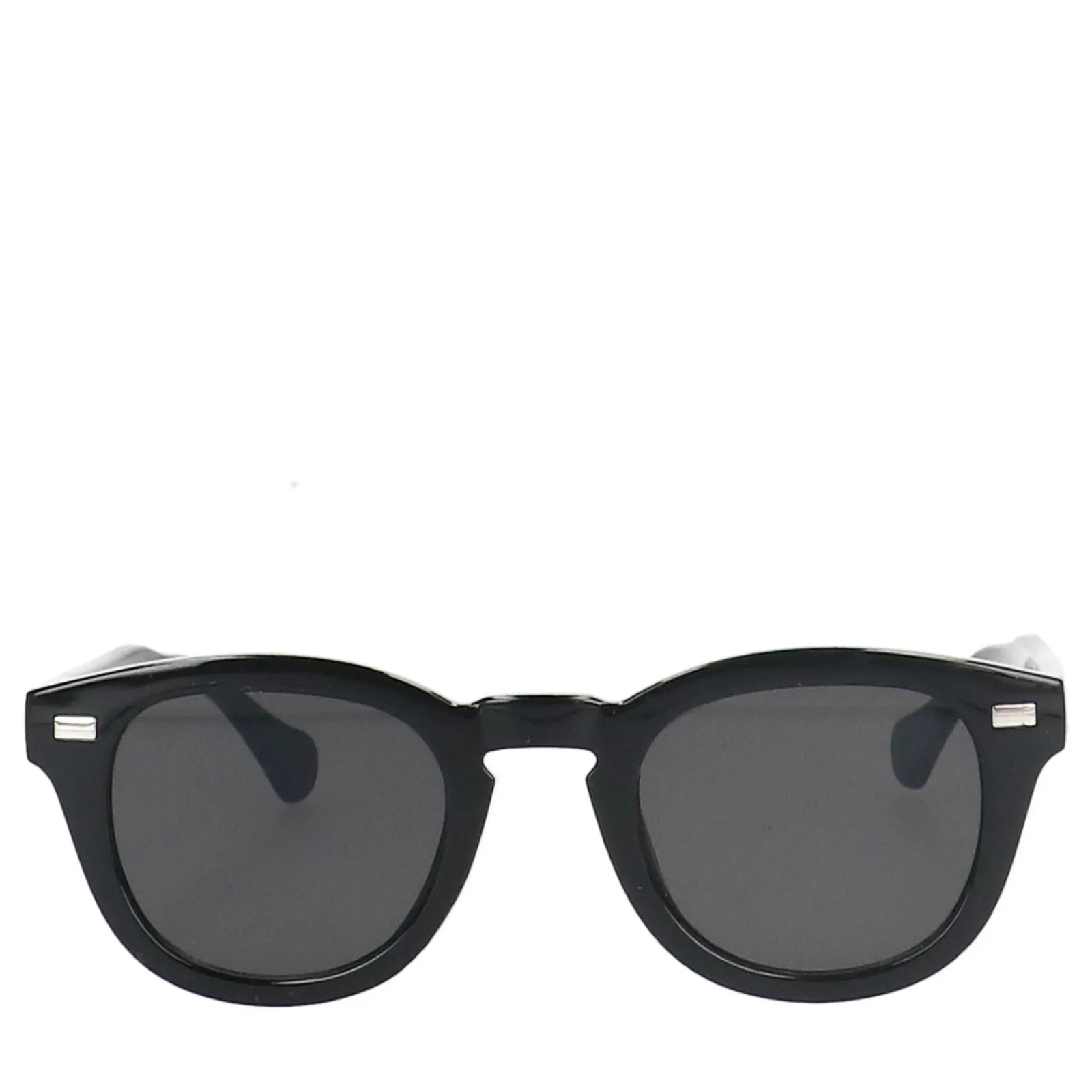 Deze Zwarte Heren Zonnebril Van Sacha Heeft Een Unieke Uitstraling Door De Ronde Glazen. De Glazen Zijn Zwart Gekleurd Met Kleine Zilvere Details Op Het Montuur. De Bril Is 14 Cm Breed En Heeft Pootjes Van 14 Cm Lang.
